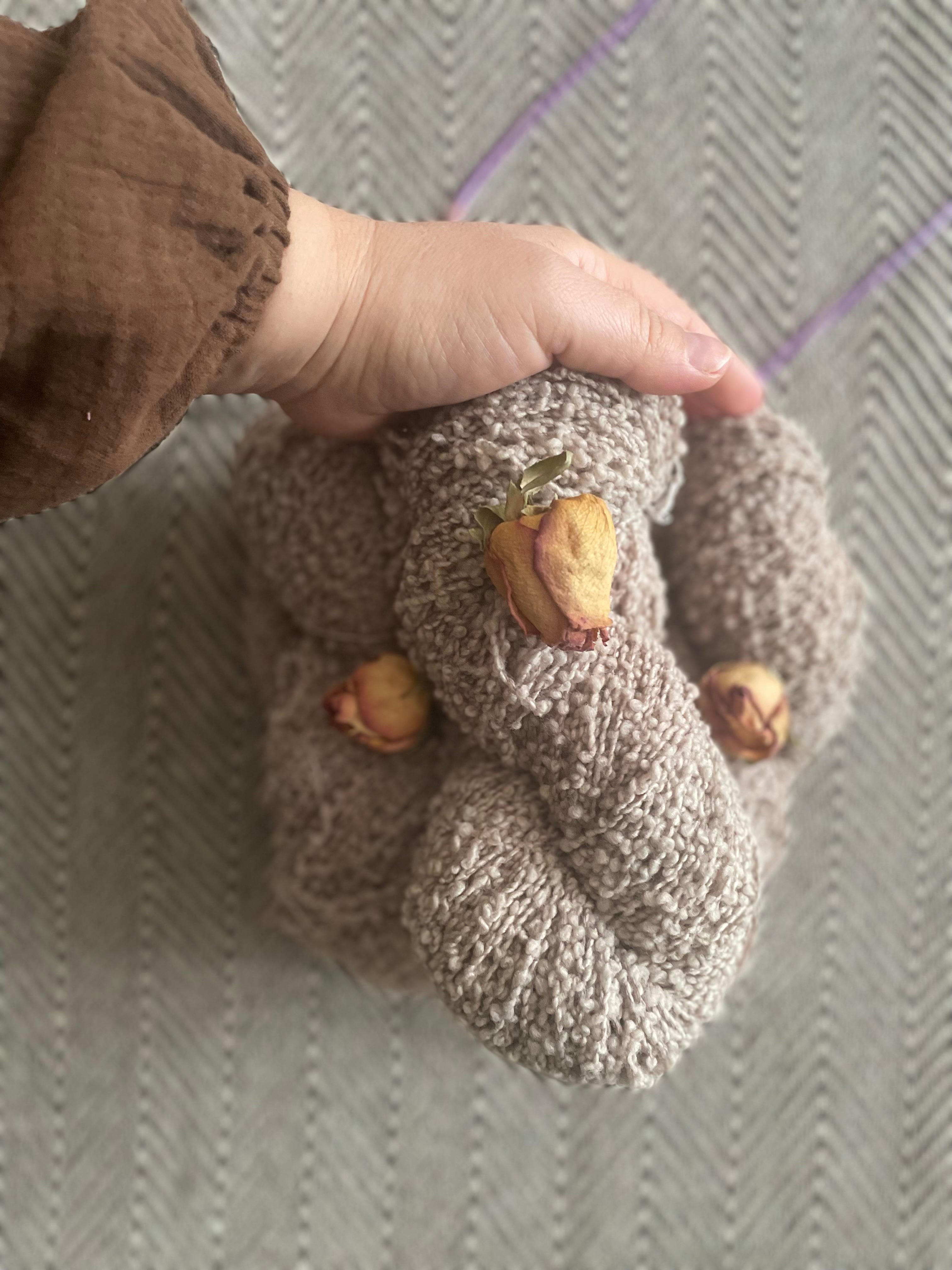 Sto intrecciando anche un semplice cardigan in bouclé che ho iniziato in treno la settimana scorsa e sto portando avanti una riga al giorno. “Viaggio e leggero” sono forse i concetti che più si avvicinano alla storia che voglio raccontare con questo lavoro.